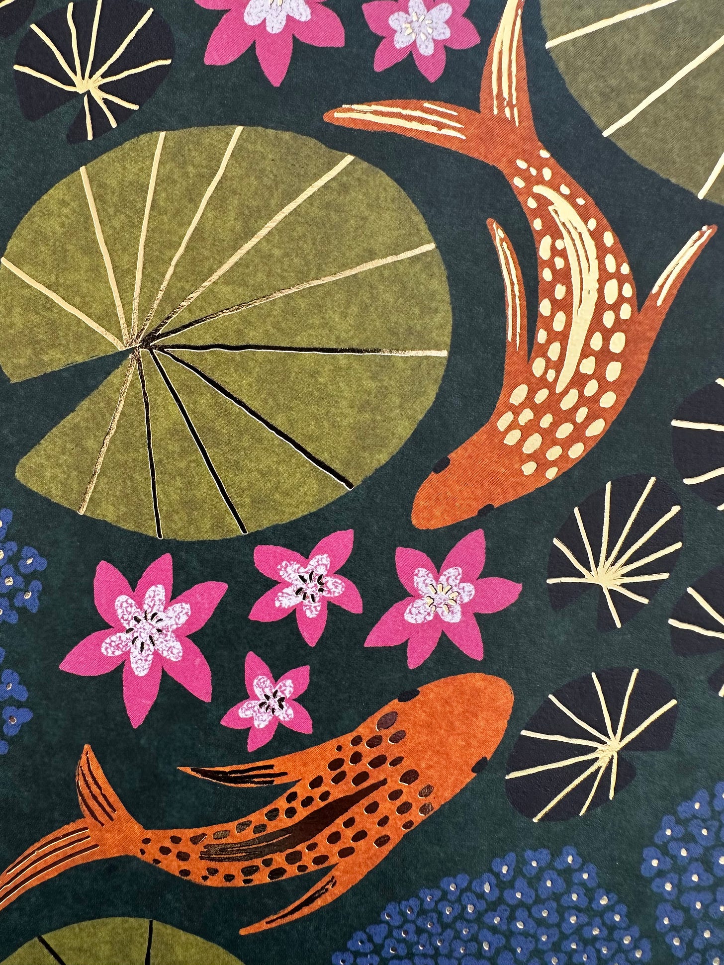 SIRÈNE ET POISSON Perhaps she dreamt she was flying, imagined that warm sea so gloriously turquoise beneath her? And the wreath of Turkish roses in her hand. The scent of musk and neroli. Yet she remembered the sun-drenched citrus spray misting her skin, the sure muscular flex of her sequinned tail. How she soared with her piscine partner to the palm trees’ verdant applause. In the dawn drizzle, stinging pinkly from the cold tub’s dark baptismal, she presses coral-white toes into the vetiver twist of wet grass. Black-rooted, grounded. Back to shore. And bends to the pond, Rose petals float across her upside-down face, tracing the ripples until bright gouts of orange bloom from green fronds. A dazzle of Fauvist fish dancing.